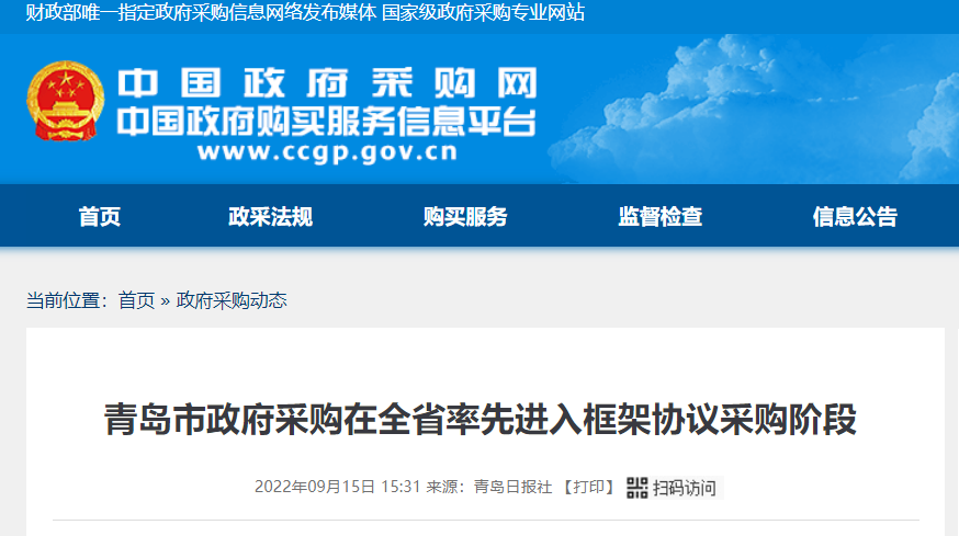 目前,除寧夏,安徽、海南、重慶等多省市也已相繼跟進。近日,青島市政府正式宣布:全省率先進入框架協議采購階段。