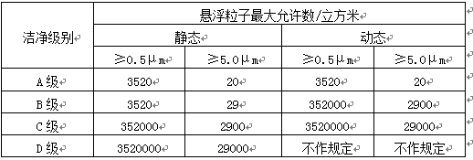 各潔凈級別空氣懸浮粒子的標(biāo)準(zhǔn)