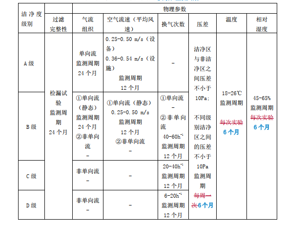 各級別潔凈環(huán)境物理參數(shù)建議標(biāo)準(zhǔn)