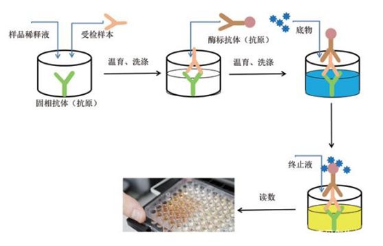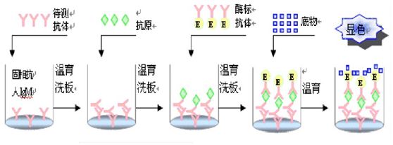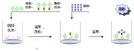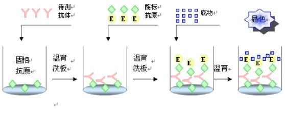 方法:用已知抗體包被,加入待測血清,再加酶標抗體,加底物顯色。