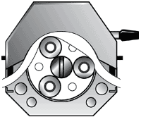 蠕動(dòng)泵的工作就像用手指夾擠一根充滿流體的軟管,隨著手指向前滑動(dòng)管內(nèi)流體向前移動(dòng)。蠕動(dòng)泵也是這個(gè)原理只是由滾輪取代了手指。通過(guò)對(duì)泵的彈性輸送軟管交替進(jìn)行擠壓和釋放來(lái)泵送流體。就像用兩根手指夾擠軟管一樣,隨著手指的移動(dòng),管內(nèi)形成負(fù)壓,液體隨之流動(dòng)。