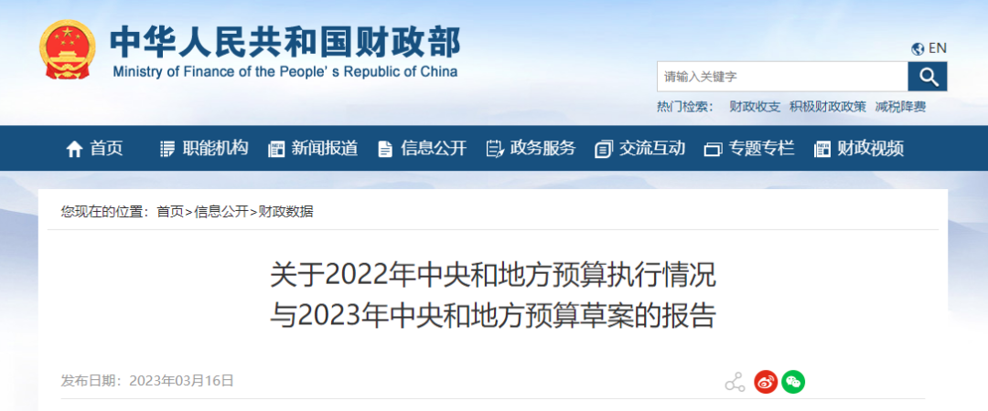 3月16日,財(cái)政部發(fā)布《關(guān)于2022年中央和地方預(yù)算執(zhí)行情況與2023年中央和地方預(yù)算草案的報(bào)告》(以下簡(jiǎn)稱《預(yù)算報(bào)告》),公布了2023全年國(guó)家財(cái)政的預(yù)算安排情況。