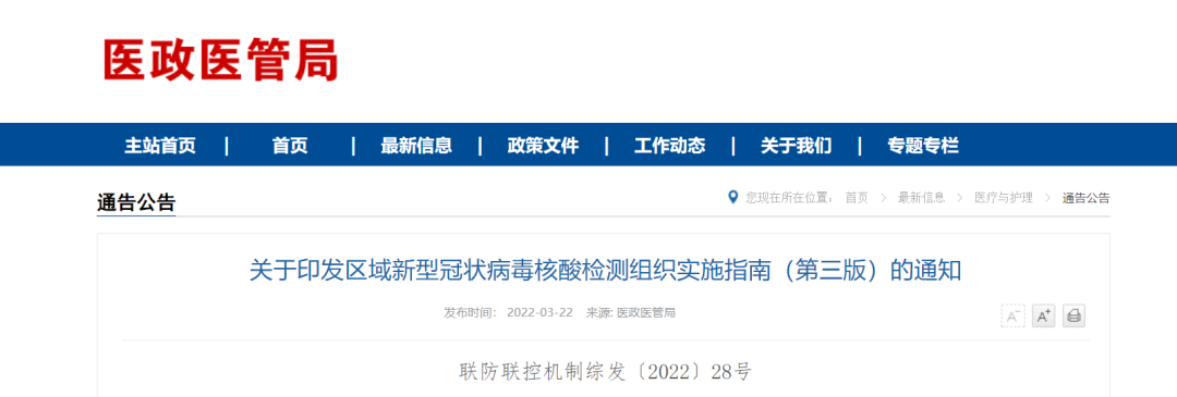 3月22日下午,國(guó)家衛(wèi)健委發(fā)布《關(guān)于印發(fā)區(qū)域新型冠狀病毒核酸檢測(cè)組織實(shí)施指南(第三版)的通知》(以下簡(jiǎn)稱《通知》)。《通知》針對(duì)奧密克戎變異株傳播速度快、傳染性強(qiáng)、傳播隱匿等特點(diǎn)修訂,并提出全新要求。
